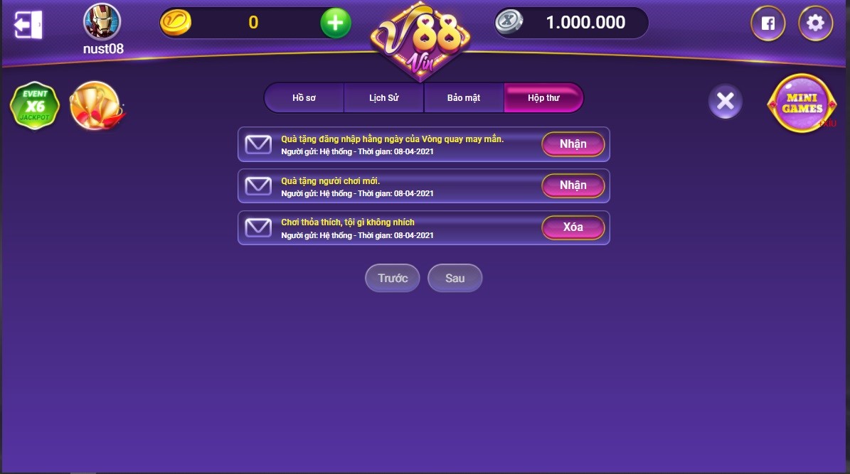 Tham gia cá cược tại cổng game bài Vin88, ngoài việc anh em sẽ được thưởng thức các tựa game hấp dẫn ra thì anh em còn có thể nhận những ưu đãi vô cùng hấp dẫn. Theo đó để biết thêm các thông tin về các khuyến mãi này, bạn hãy vào mục hộp thư để biết thêm chi tiết.